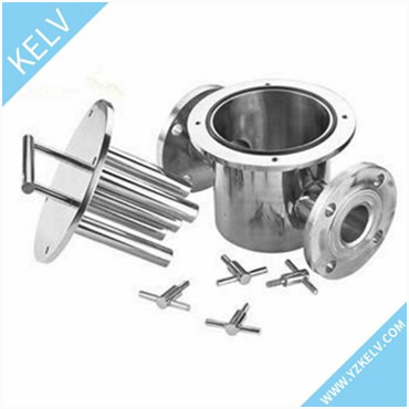 產(chǎn)品簡介 MG系列管道強(qiáng)磁除鐵器(簡稱MG除鐵器),用于清除鐵質(zhì)污染物(如鐵銹、鐵屑)和其它細(xì)小的鐵磁性雜質(zhì),可有效提高生產(chǎn)線上的產(chǎn)品純度,保護(hù)關(guān)鍵設(shè)備免受鐵質(zhì)顆粒的破壞。MG除鐵器采用三維有限元分析法最優(yōu)化設(shè)計(jì)磁棒磁路及分布。整機(jī)為全不銹鋼結(jié)構(gòu)材料。其核心磁棒為釹鐵硼超強(qiáng)永磁材料,表面磁場強(qiáng)度峰值大于12000高斯,為世界最高等級(jí)材料。磁棒和連接件之間采用連續(xù)不銹鋼焊接。上蓋可采用快開式或衛(wèi)生卡箍設(shè)計(jì)。MG管道強(qiáng)磁除鐵器廣泛應(yīng)用于食品、金屬加工、制藥、化工、礦業(yè)、陶瓷、造紙等多個(gè)行業(yè),為客戶解決生產(chǎn)中碰到的難題。產(chǎn)品的突出性能和超長壽命得到國內(nèi)外知名企業(yè)的一致認(rèn)可,如貴公司或客戶在質(zhì)量與性能上有更高的要求,MG除鐵器將是絕佳選擇! MG除鐵器細(xì)分為2個(gè)系列:MGS系列,密集小直徑磁棒排布,適合捕捉極微小的鐵質(zhì);MGP系列,紙漿專用型,適合捕捉大顆粒的鐵質(zhì)。主要規(guī)格參數(shù) ■ 子系列MGS/MGP ■ 口徑DN25-DN600 ■ 磁場峰值(Gauss) 6000/12000 ■ 適用溫度(℃) <60,高溫型可定制 ■ 殼體材質(zhì)304,316L ■ 設(shè)計(jì)壓力(MPa) 0.6,1.0典型適用行業(yè)及流體 ■ 適用行業(yè):食品飲料、金屬加工、制藥、化工、陶瓷、造紙等 ■ 適用液體類型:含微量鐵質(zhì)顆粒的液體。 ■ 主要分離作用:捕捉鐵質(zhì)顆粒 ■ 分離類型:磁性捕捉 除鐵器如何清理: 流體除鐵器清理頻率:根據(jù)處理物料中鐵雜質(zhì)的含量多少、每小時(shí)物料處理量等參數(shù)確定,一般磁棒表面吸附的粉狀鐵雜質(zhì)厚度不宜超過10mm,定期及時(shí)清理,從而保持 佳的使用效果。 流體除鐵器清理步驟:清理流體除鐵器時(shí),首先磁芯固定螺絲打開,取出磁芯,清理吸附在磁棒表面的鐵雜質(zhì),然后再將磁芯安裝到筒體,固定,安裝磁芯時(shí)檢查密封墊圈是否完全卡在墊圈卡槽內(nèi),避免墊圈錯(cuò)位引起工作過程中物料泄露。在清理磁棒表面的鐵雜質(zhì)時(shí),可以借助厚的棉手套、抹布、托盤等工具,有需要時(shí),可以用水清洗。 |
